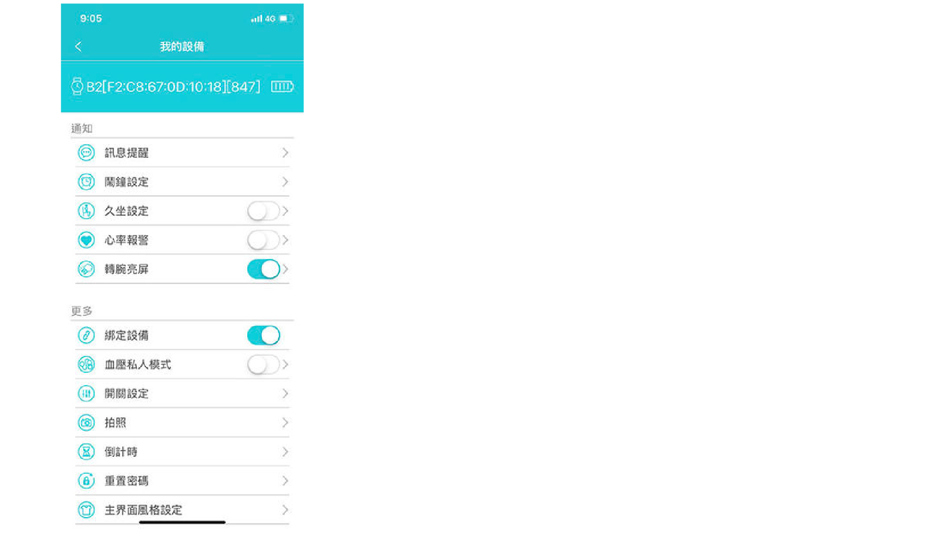 開啟藍芽讓手機與手環連接綁定後就可以開始使用了
