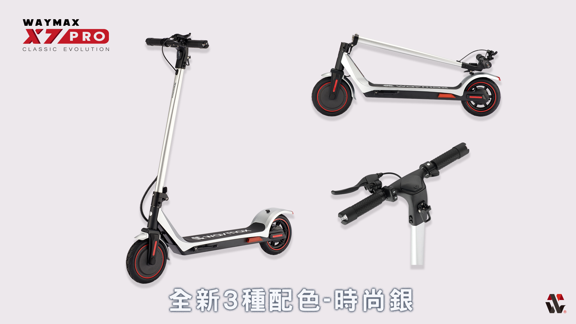 全新升級改版的X7-pro電動滑板車除了更著重在安全性外,更首度推出全新配色,讓人眼前為之一亮。
