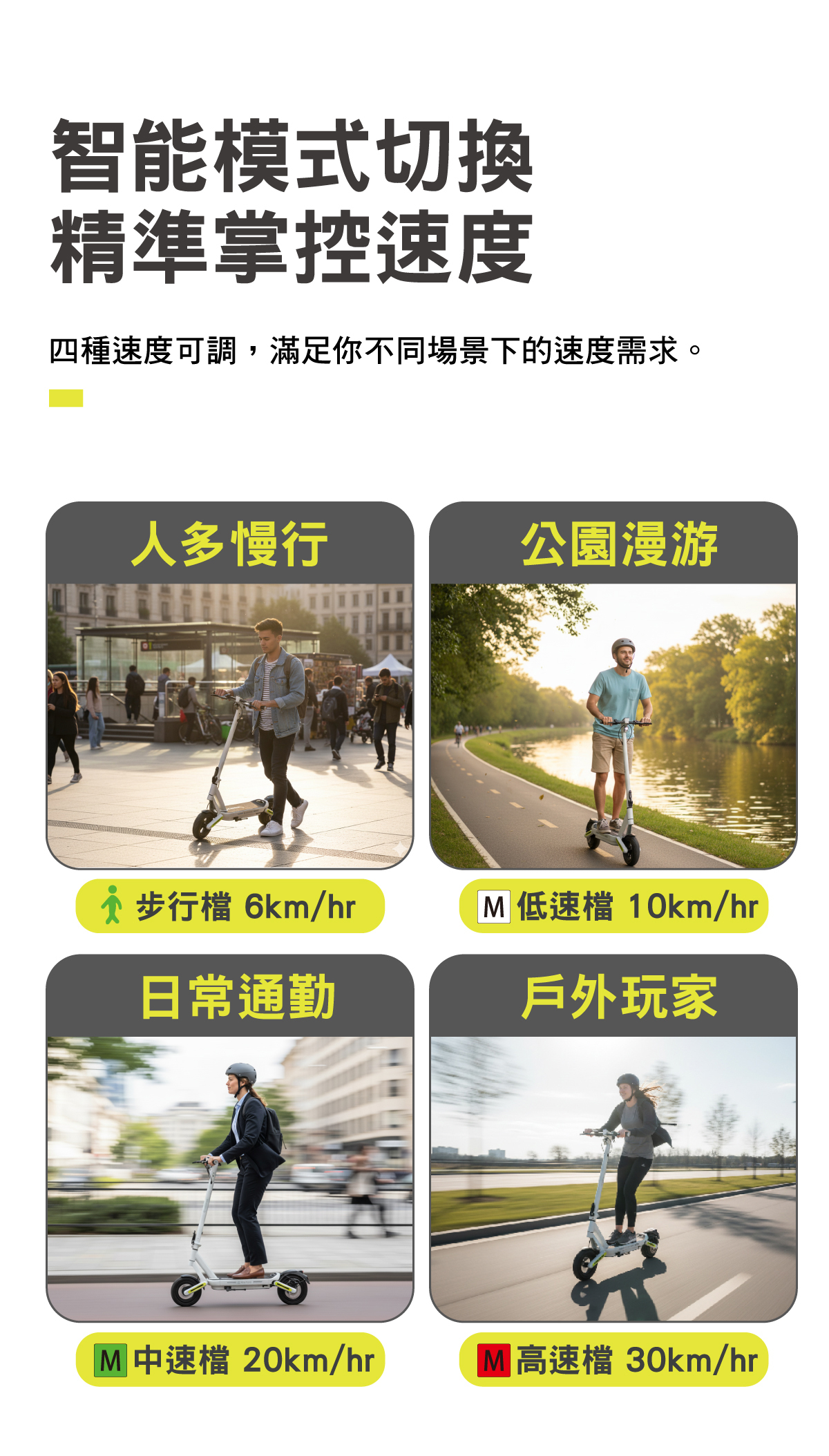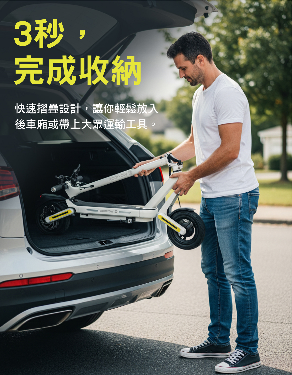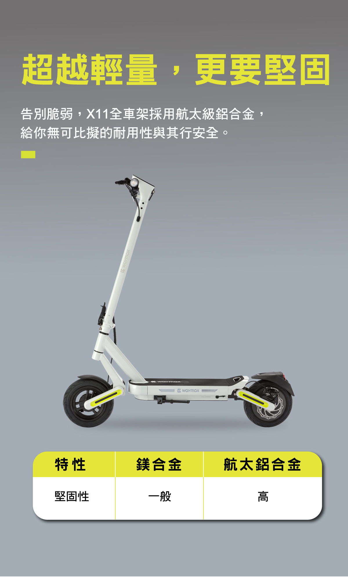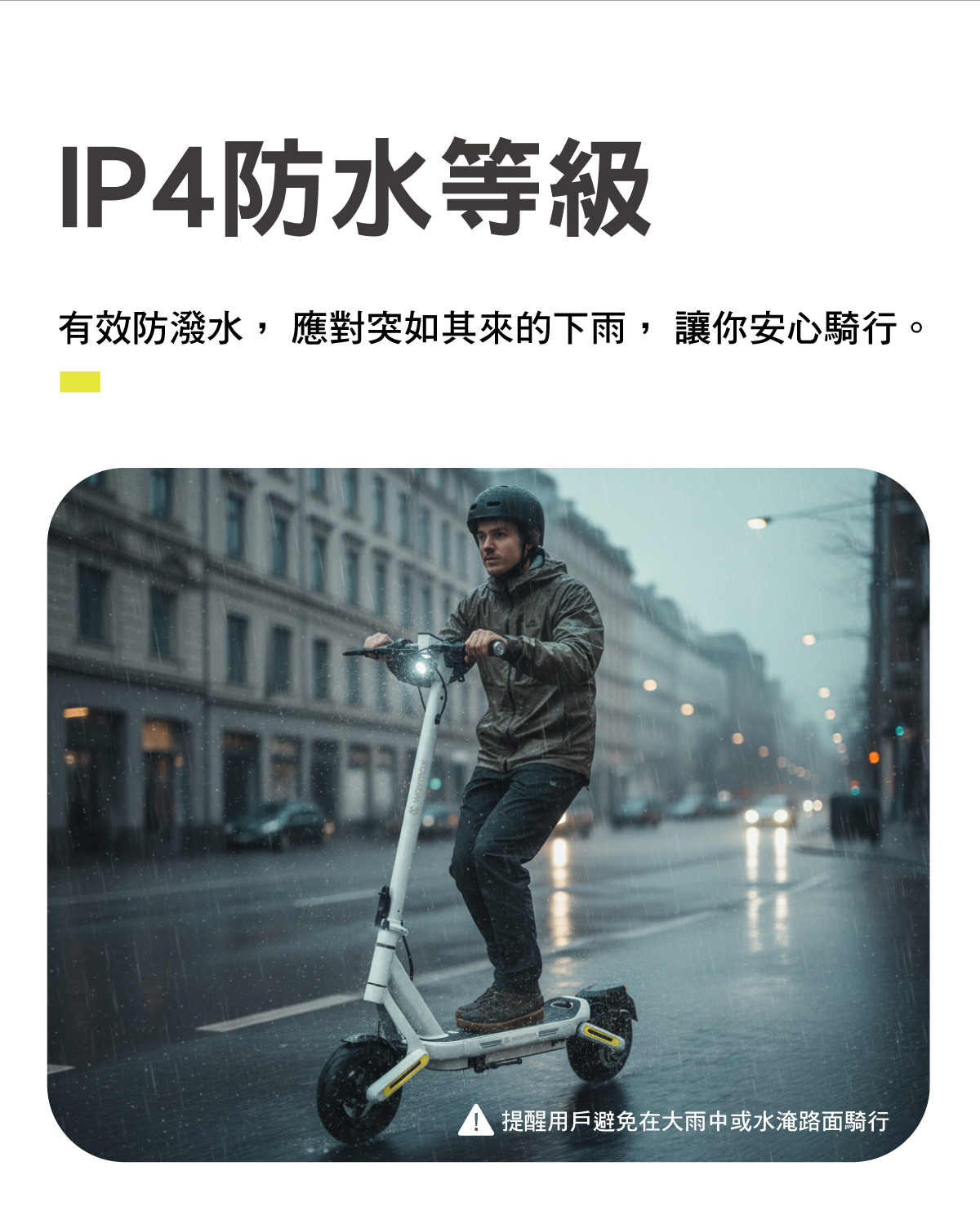 配備前後雙避震系統和 10 吋大輪胎,提供極致舒適路感。