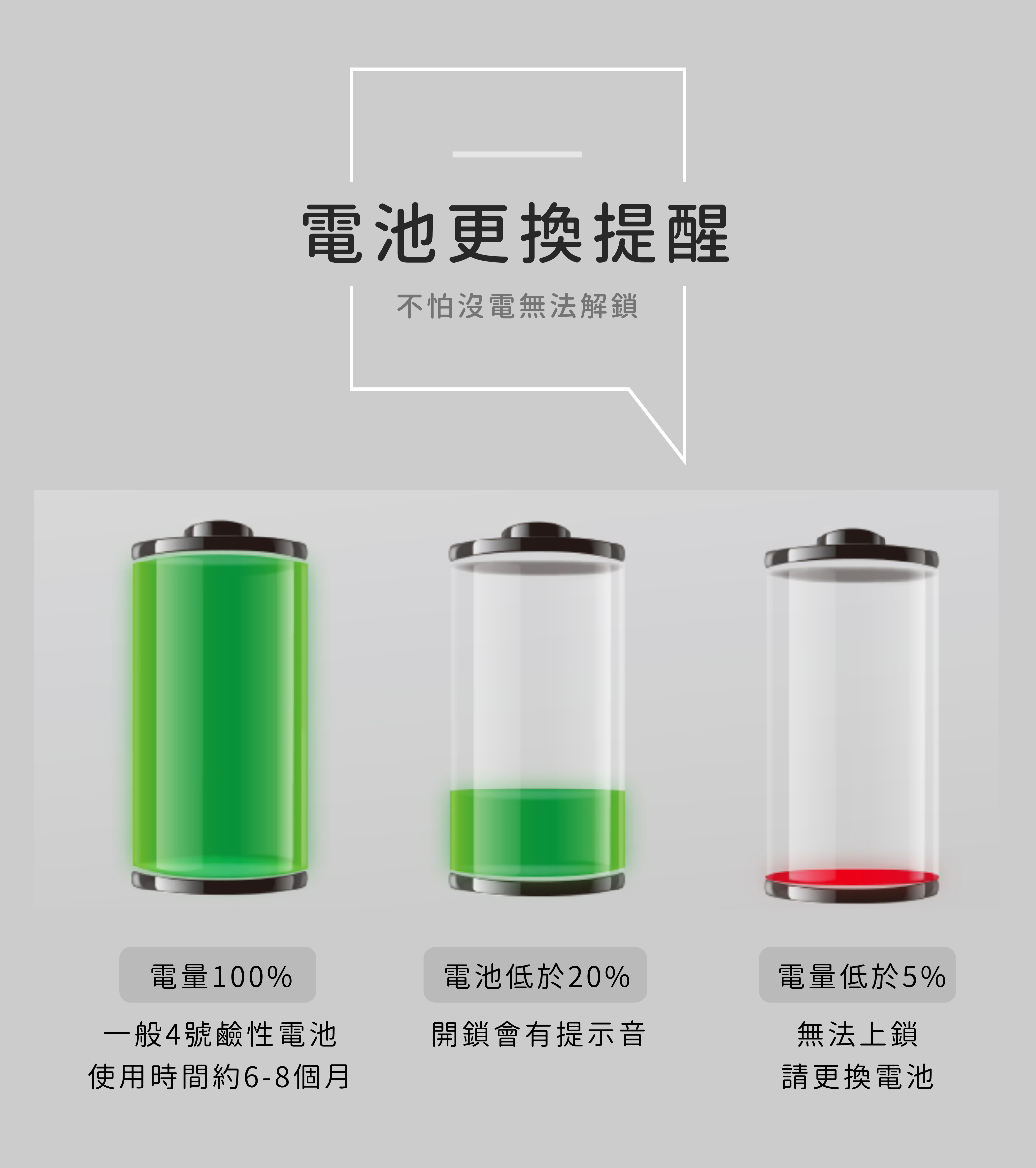 震動警報:震動或移動電子鎖,警報器將會響起30秒,連接APP可立刻解除警報